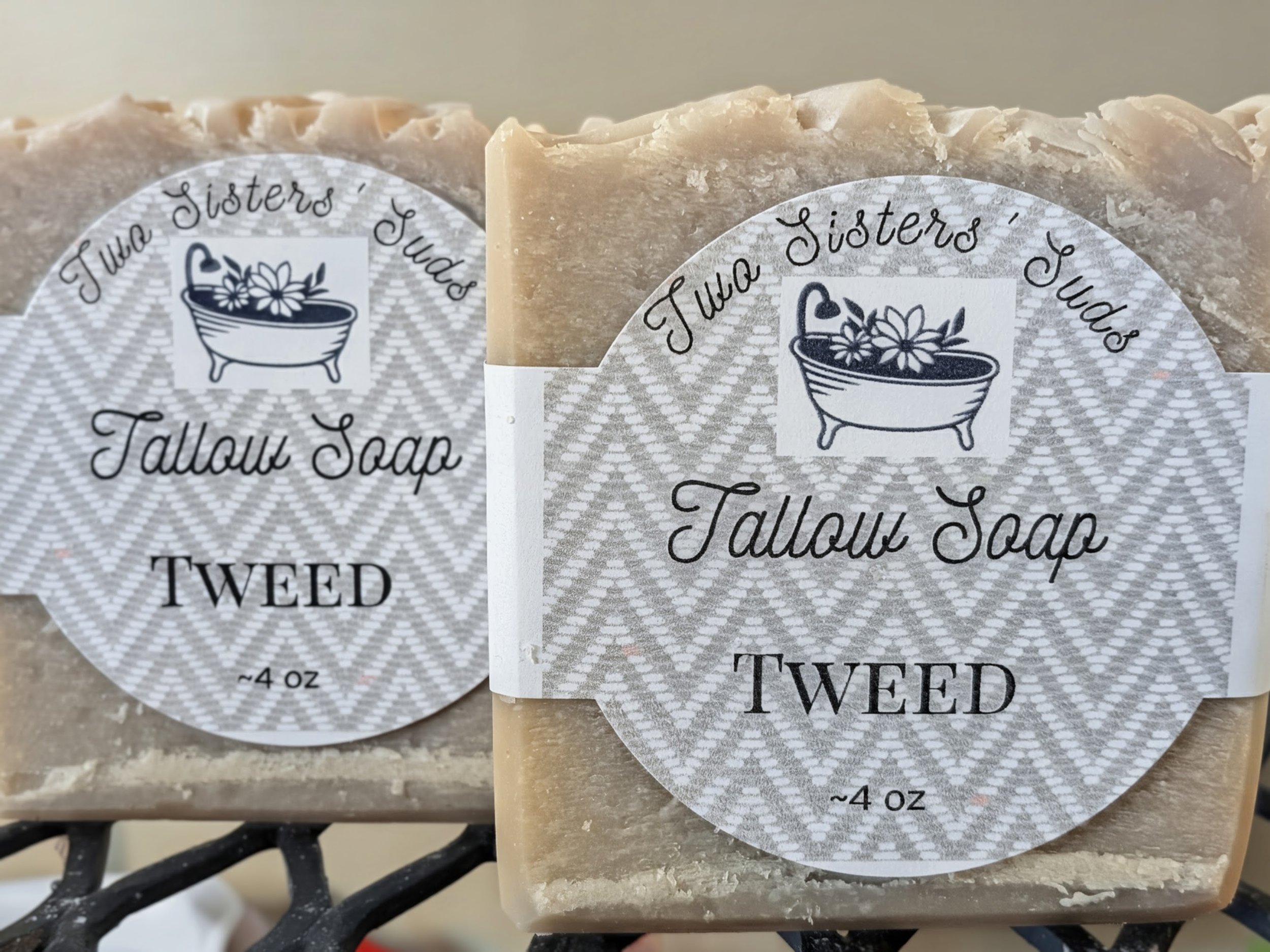 Made with saponified olive oil, coconut oil, grass fed beef tallow, shea butter, sodium lactate, sugar, mica powder & fragrance oil.