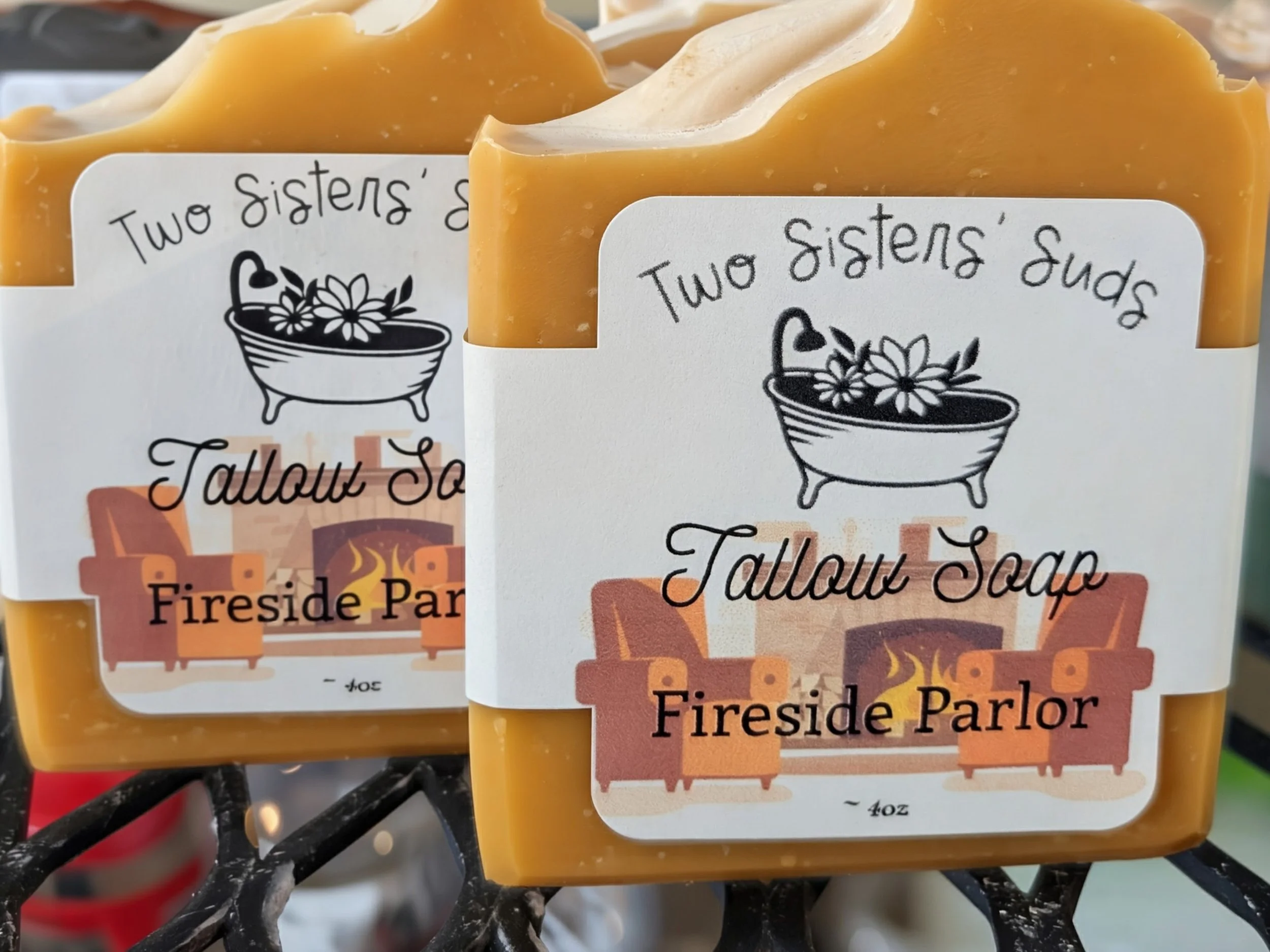 Made with saponified olive oil, coconut oil, grass fed beef tallow, shea butter, sodium lactate, sugar, & fragrance oil.